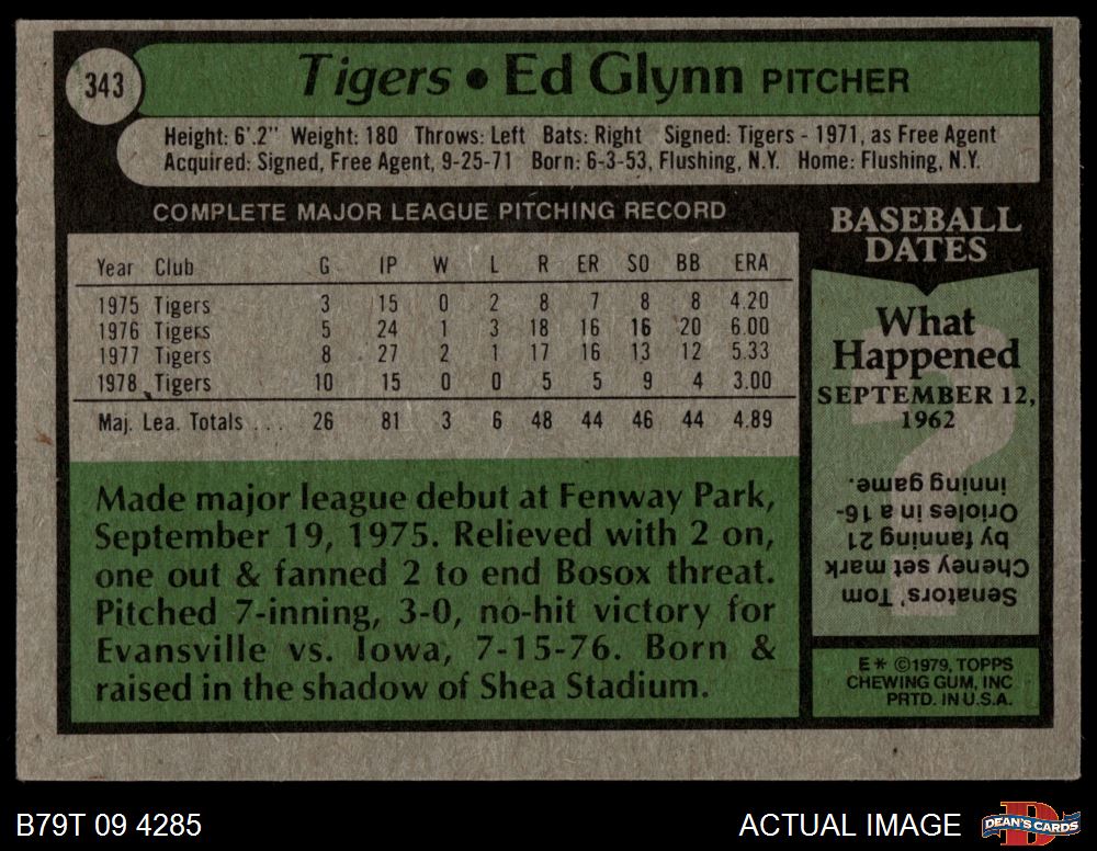1979 Topps #343 Ed Glynn
