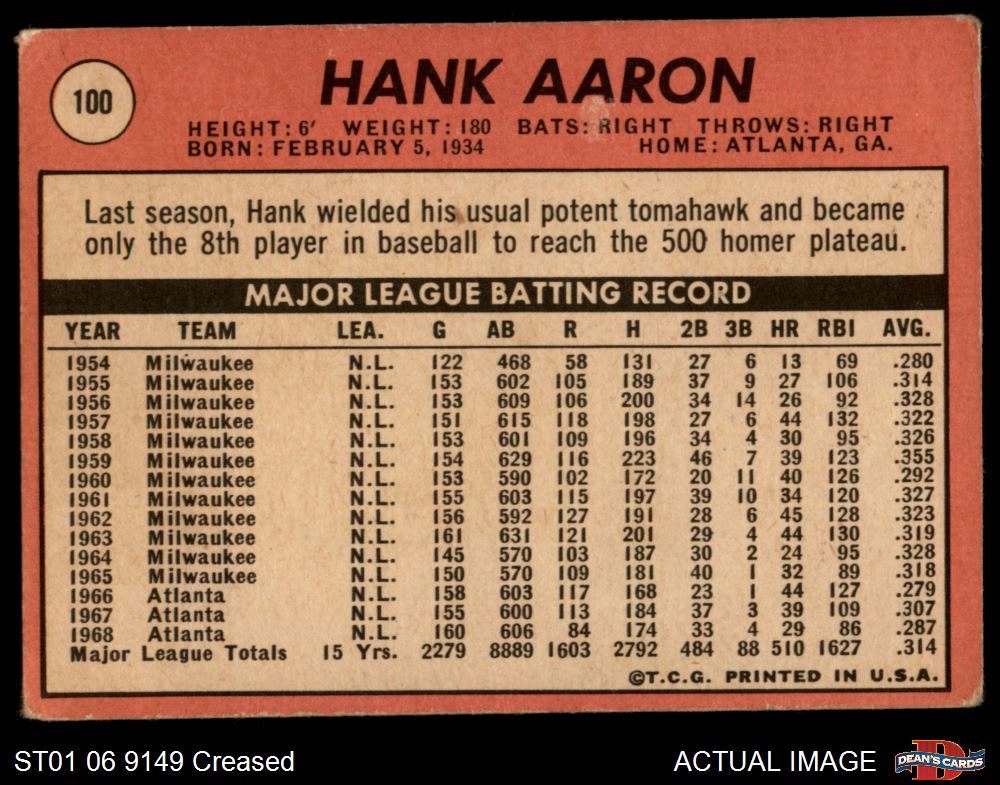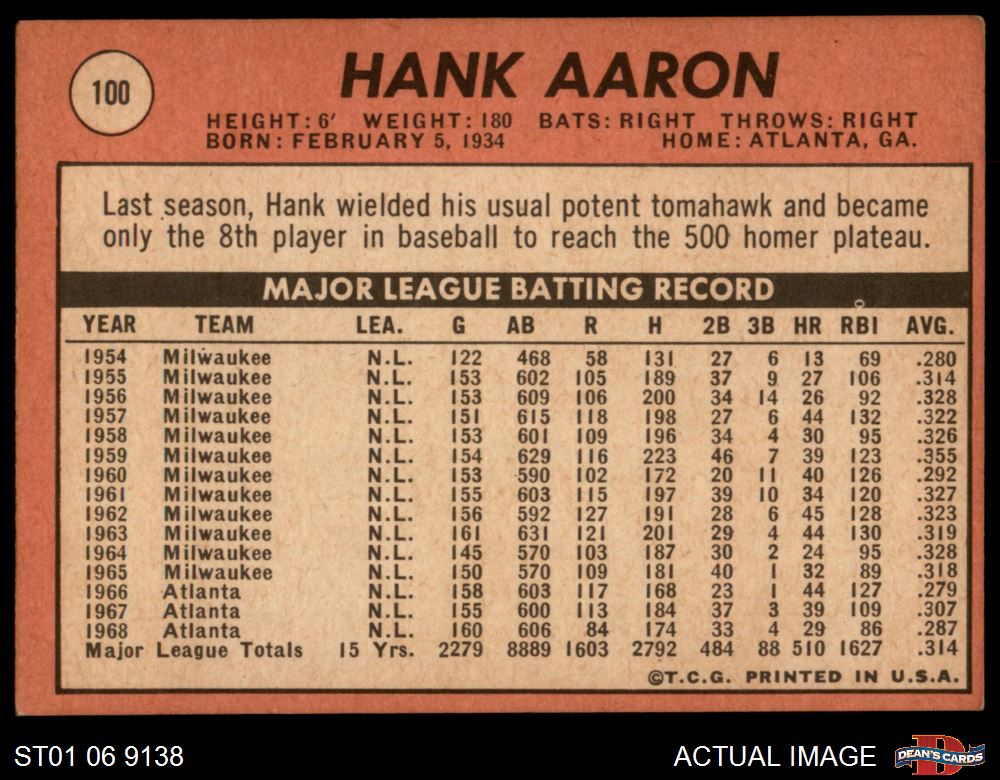 1969 Topps #100 Hank Aaron