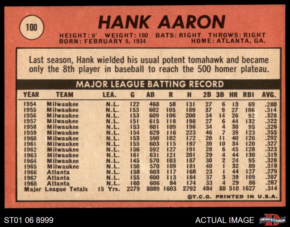 1969 Topps #100 Hank Aaron
