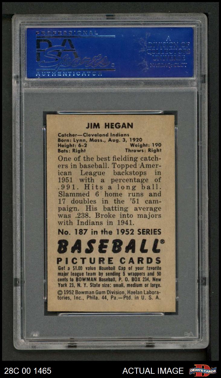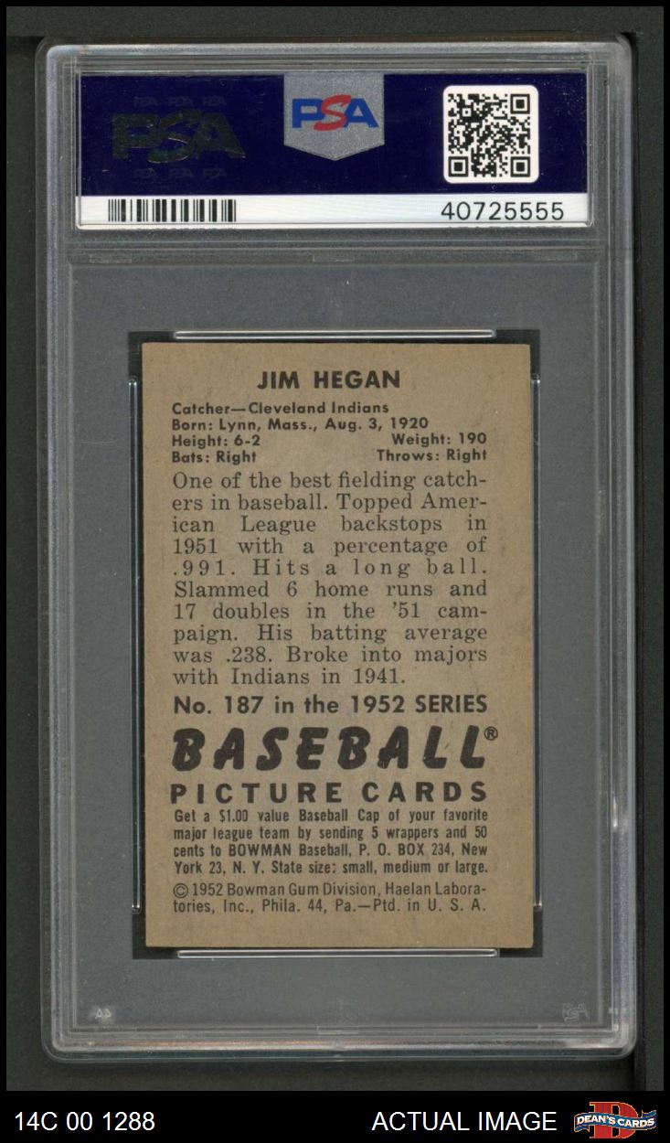 1952 Bowman #187 Jim Hegan