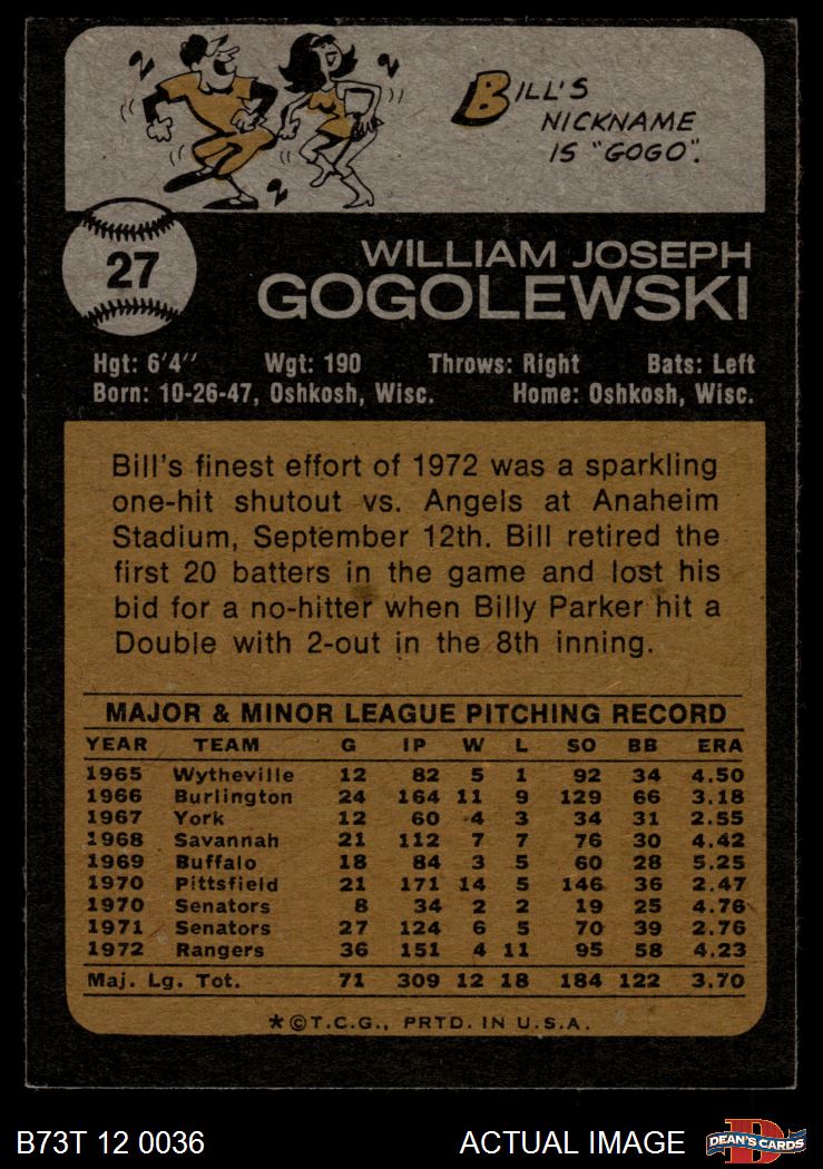 1973 Topps #27 Bill Gogolewski