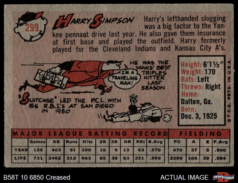 1958 Topps #299 Harry Simpson