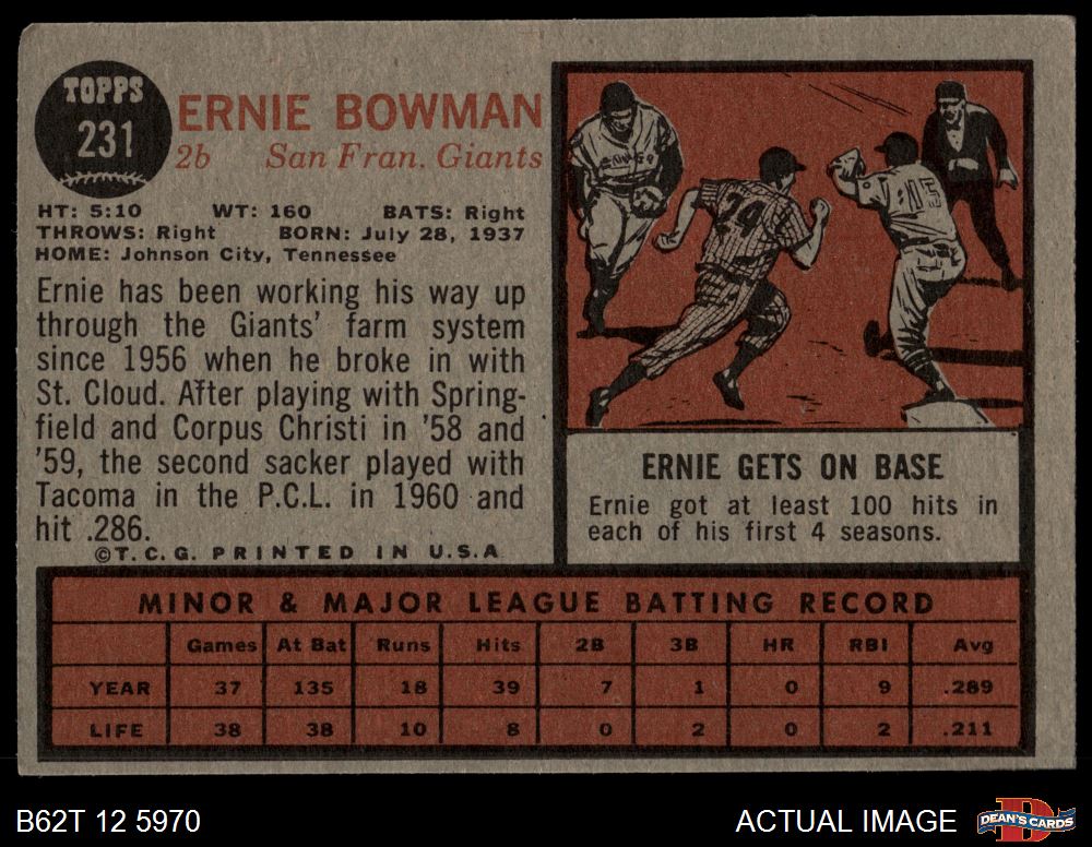 1962 Topps #231 Ernie Bowman 1 - POOR