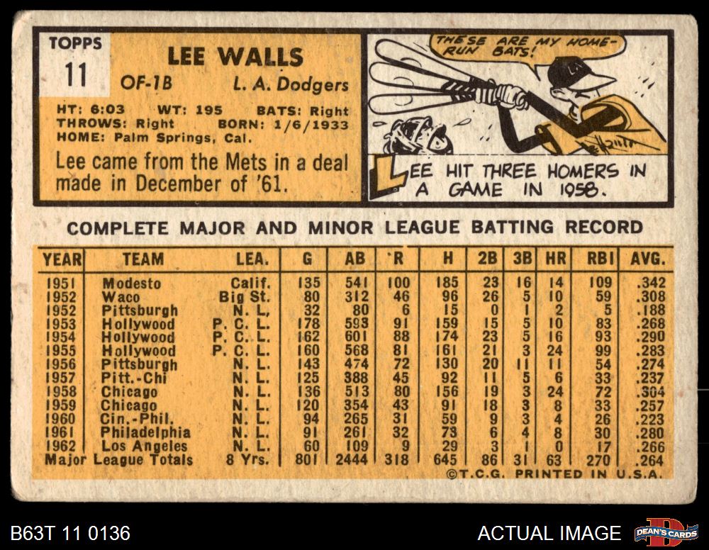 1963 Topps #11 Lee Walls