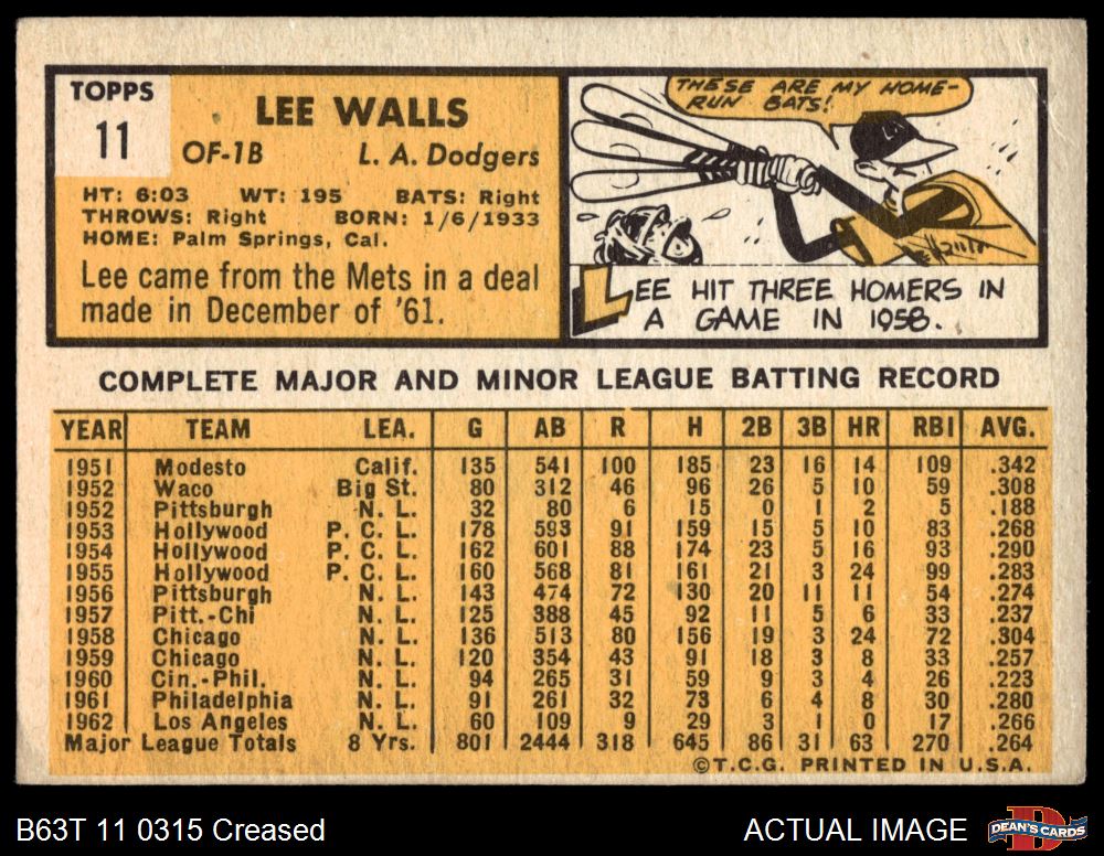 1963 Topps #11 Lee Walls 3 - VG