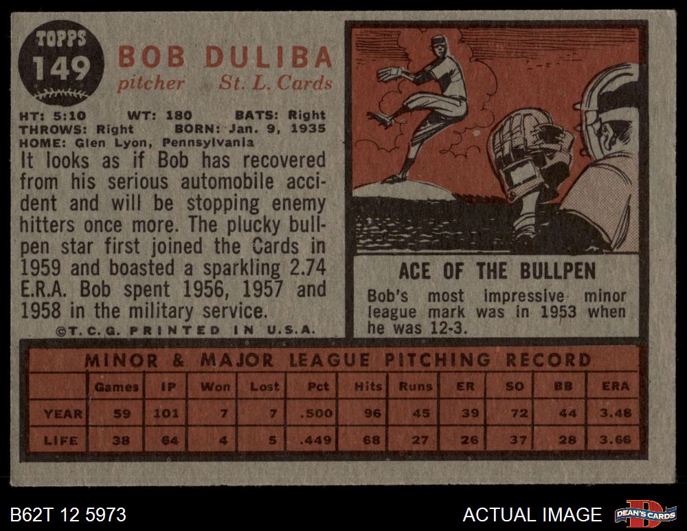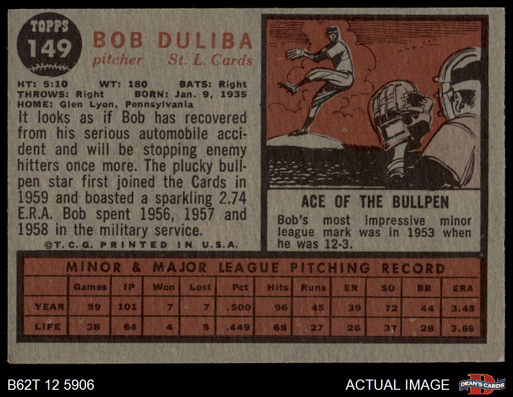 1962 Topps #149 GRN Bob Duliba 4 - VG/EX