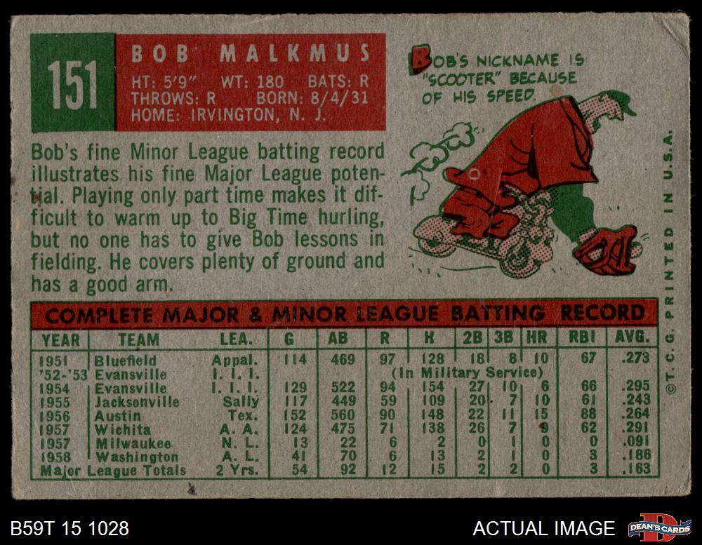 1959 Topps #151 Bobby Malkmus 1.5 - FAIR