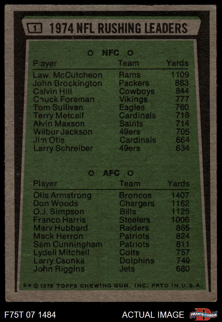 1975 Topps #1 Rushing Leaders