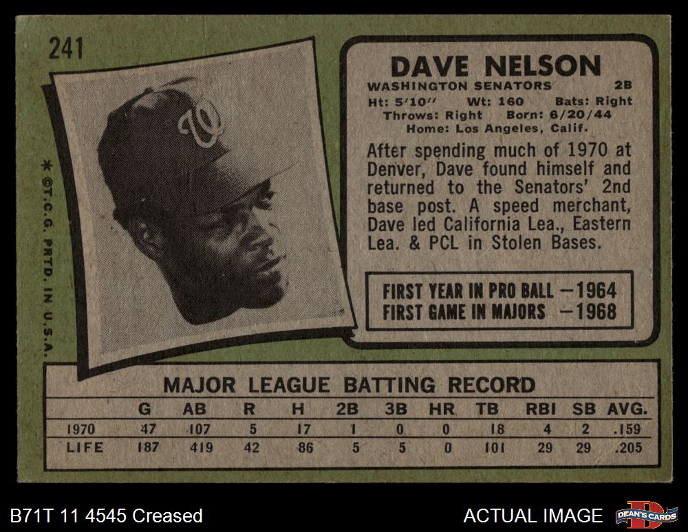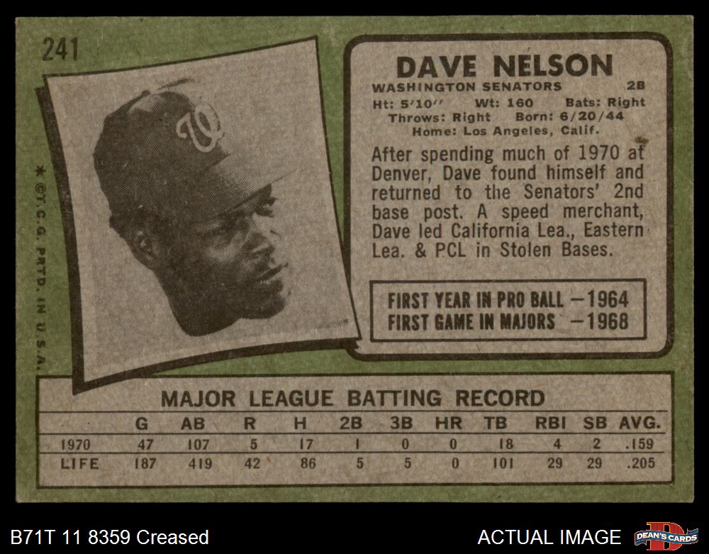 1971 Topps #241 Dave Nelson 3 - VG