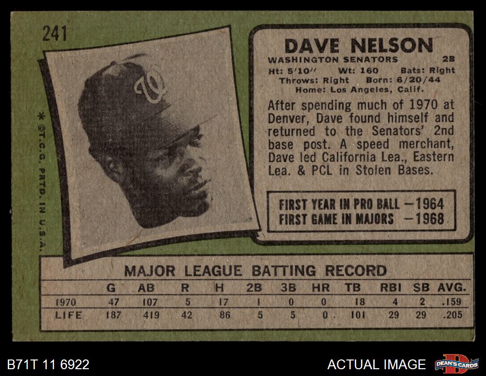 1971 Topps #241 Dave Nelson Front Thumbnail
