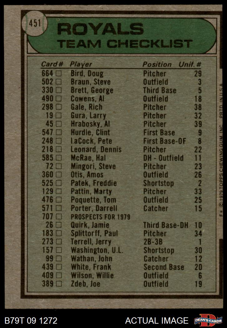 1979 Topps #451 - Whitey Herzog Royals Team Checklist 6 - EX/MT