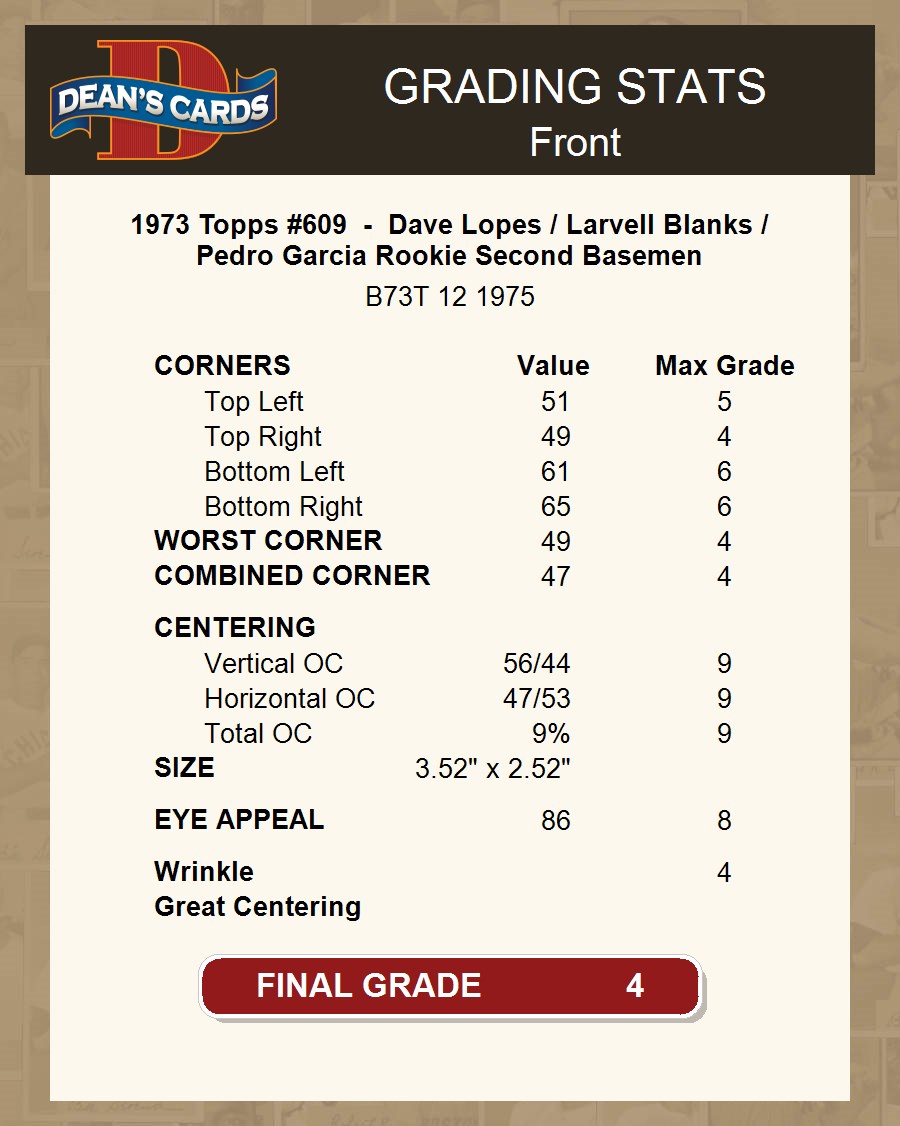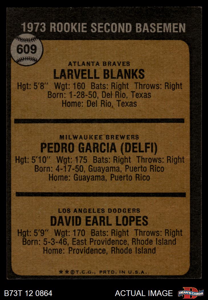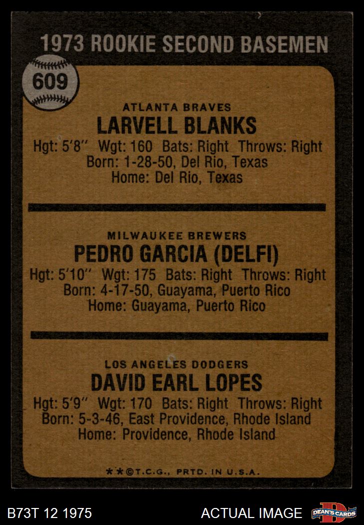 1973 Topps #609 - Dave Lopes / Larvell Blanks / Pedro Garcia Rookie Second Basemen 4 - VG/EX