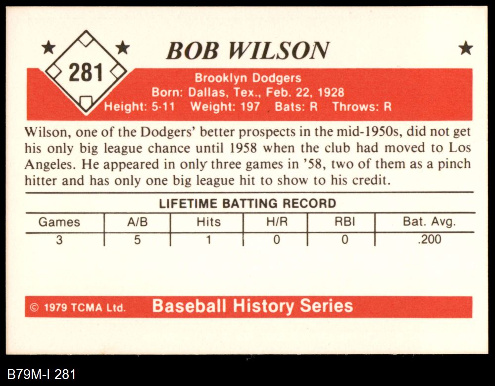 1979 TCMA The 1950's #281 Bob Wilson