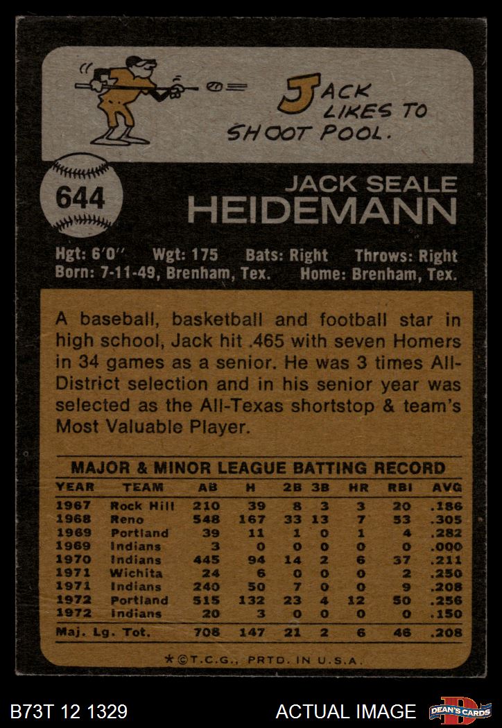 1973 Topps #644 Jack Heidemann 3.5 - VG+