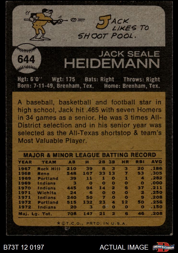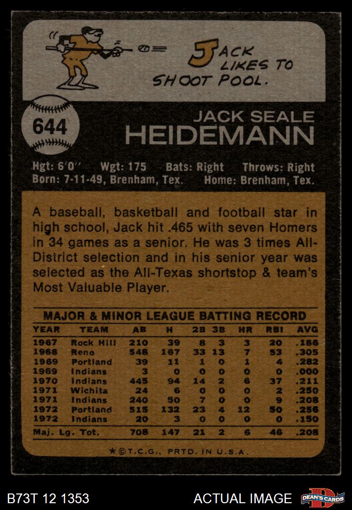 1973 Topps #644 Jack Heidemann 4 - VG/EX