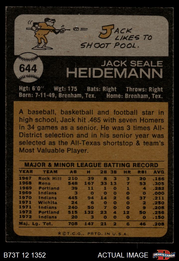 1973 Topps #644 Jack Heidemann 6.5 - EX/MT+