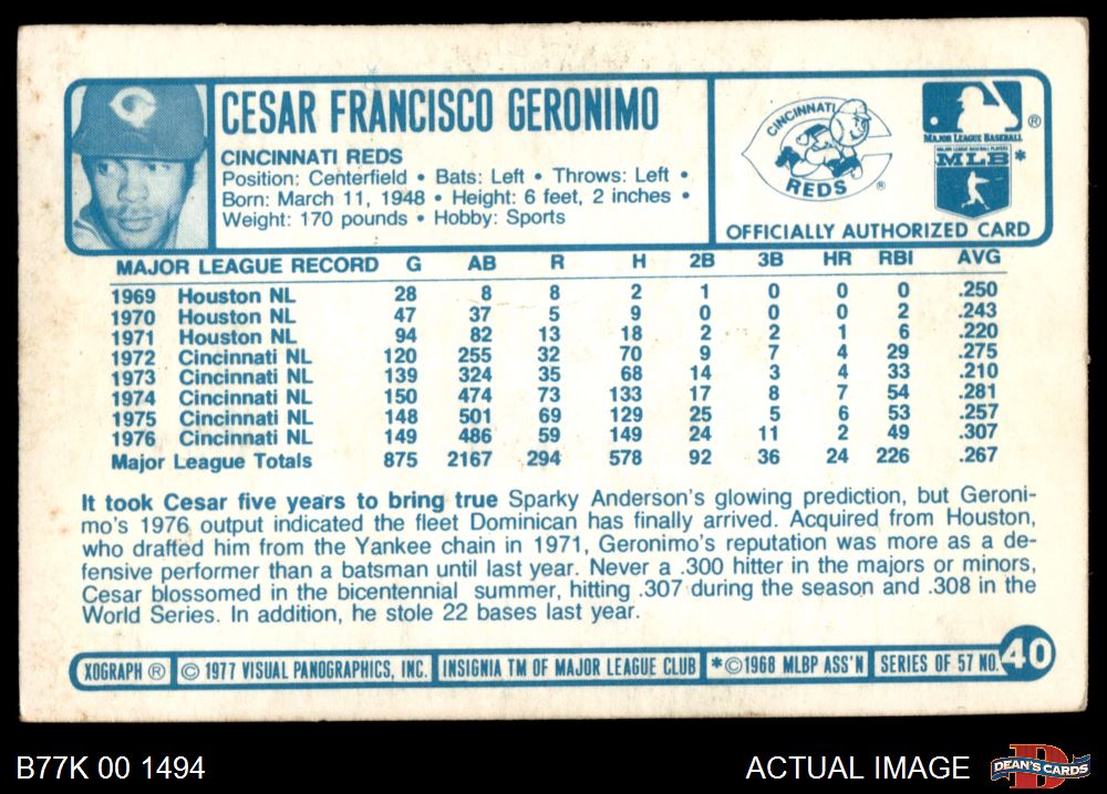 1977 Kellogg's #40 Cesar Geronimo
