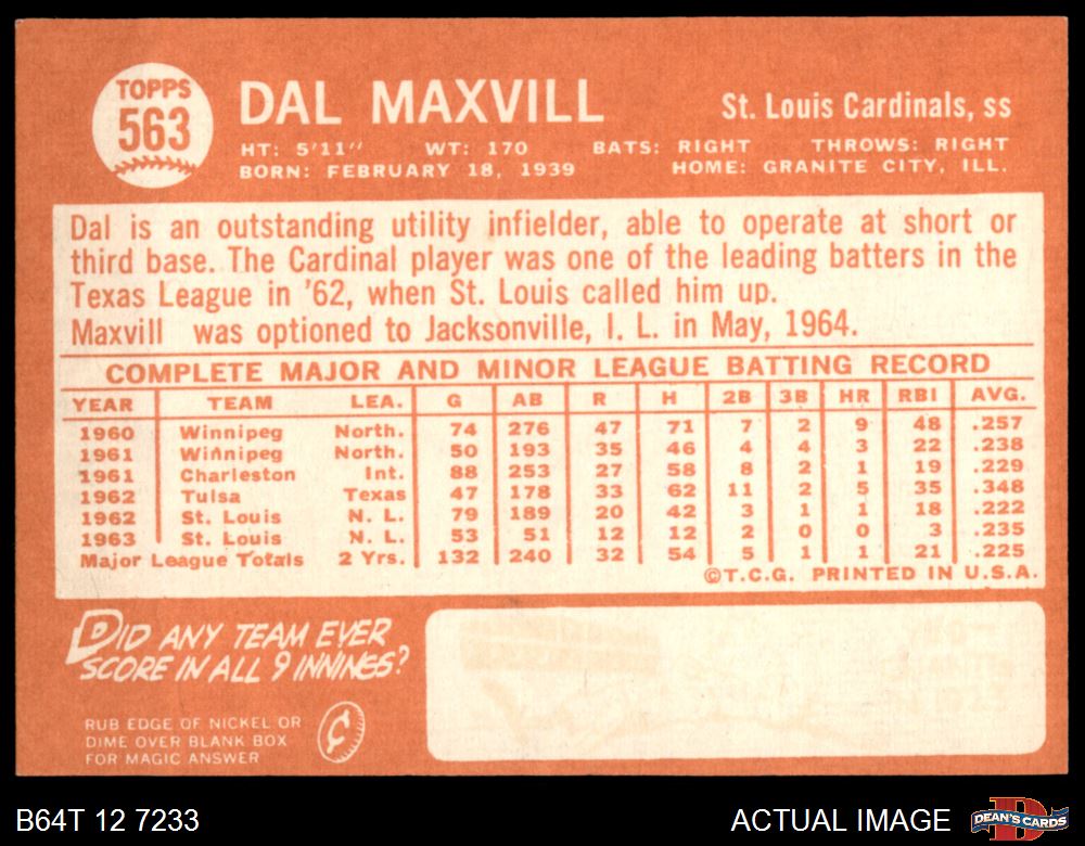 1964 Topps #563 Dal Maxvill