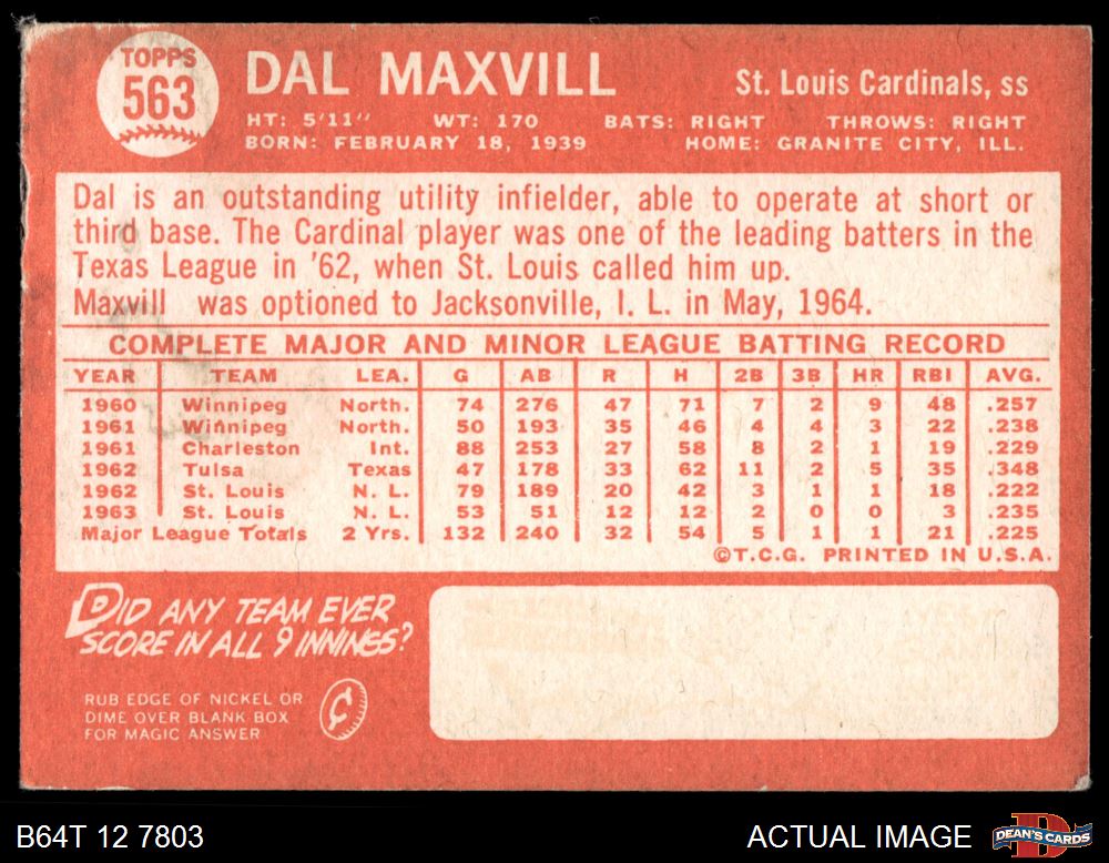 1964 Topps #563 Dal Maxvill 2 - GOOD