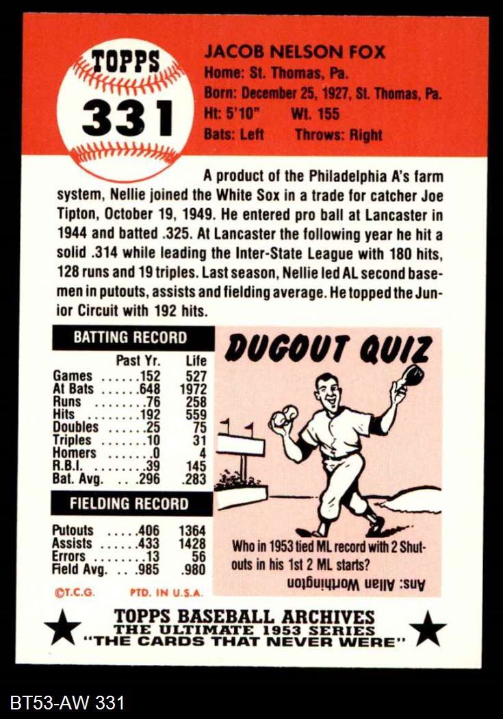 1953 Topps Archives #331 Nellie Fox 8 - NM/MT