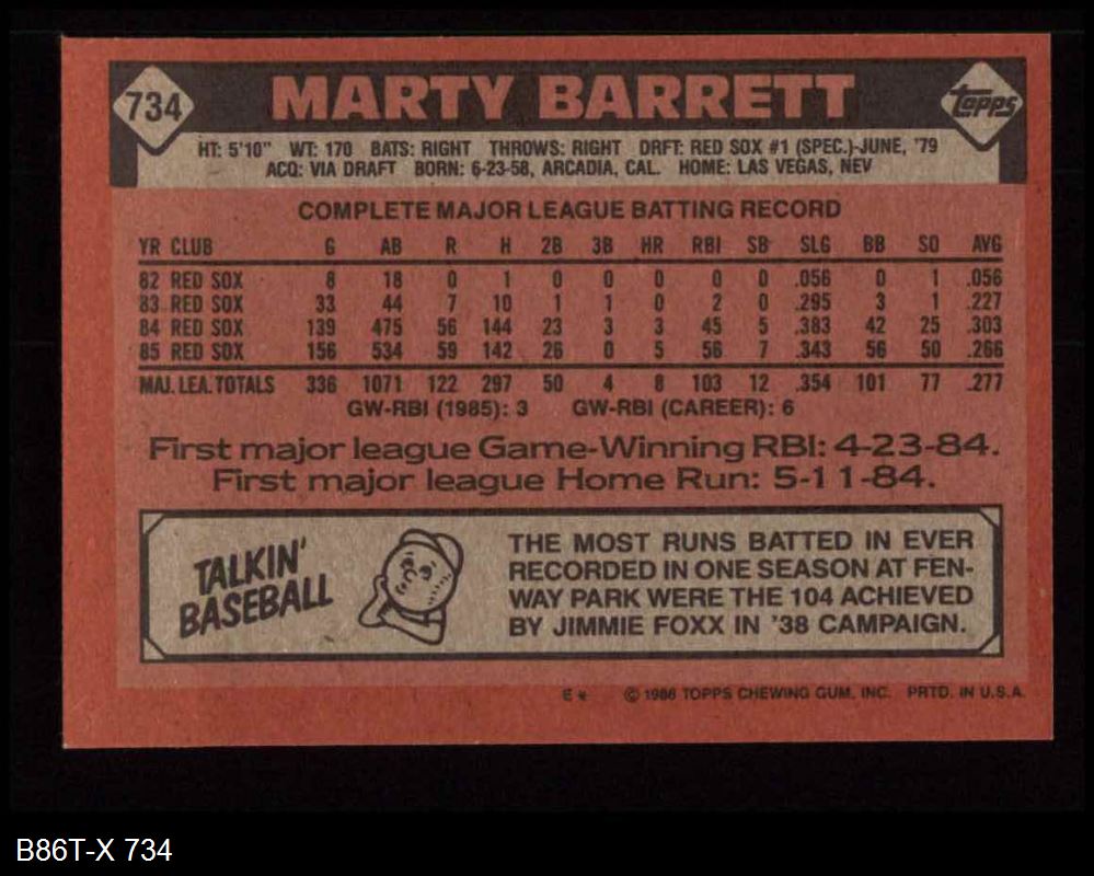 1986 Topps #734 Marty Barrett 8 - NM/MT