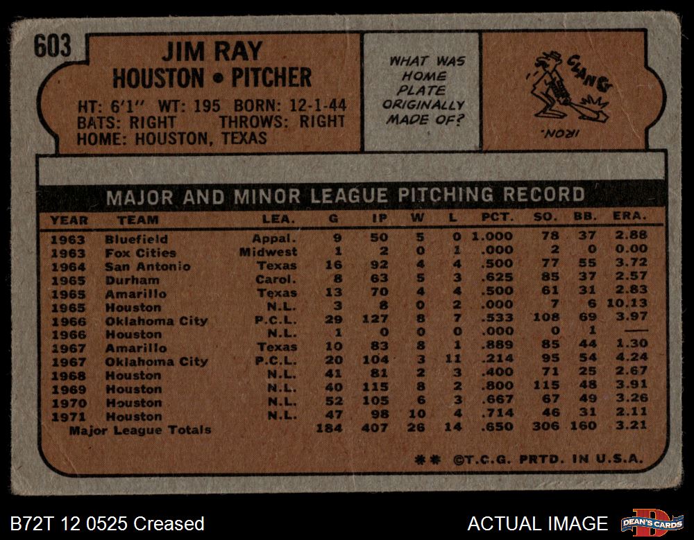 1972 Topps #603 Jim Ray 1 - POOR