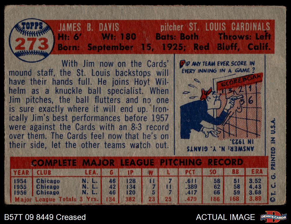 1957 Topps #273 Jim Davis 2 - GOOD