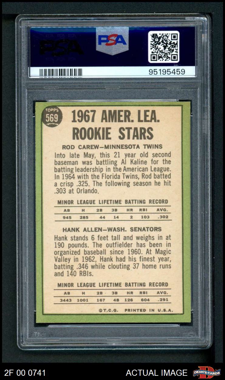 1967 Topps #569 - Rod Carew / Hank Allen A.L. Rookies PSA 7 - NM