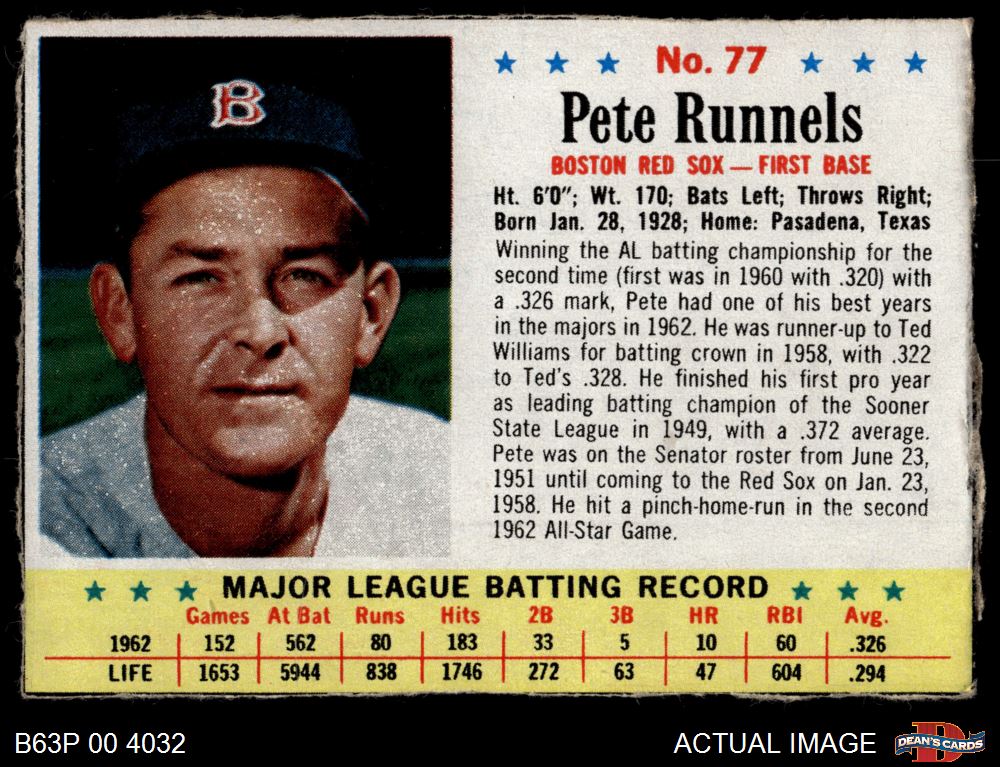 1963 Post Cereal #77 Pete Runnels 4 - VG/EX