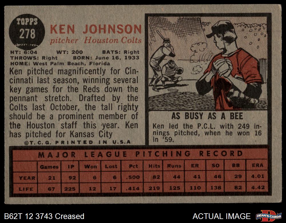 1962 Topps #278 Ken Johnson 2 - GOOD