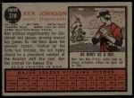 1962 Topps #278 Ken Johnson Front Thumbnail