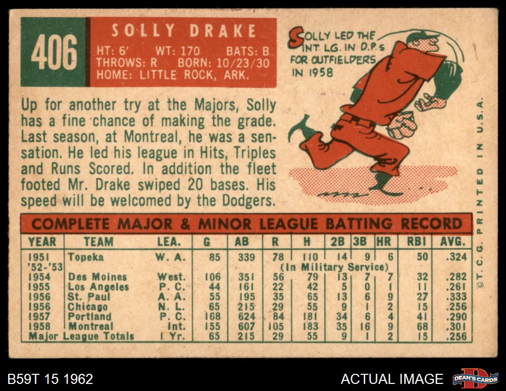 1959 Topps #406 Solly Drake 4 - VG/EX