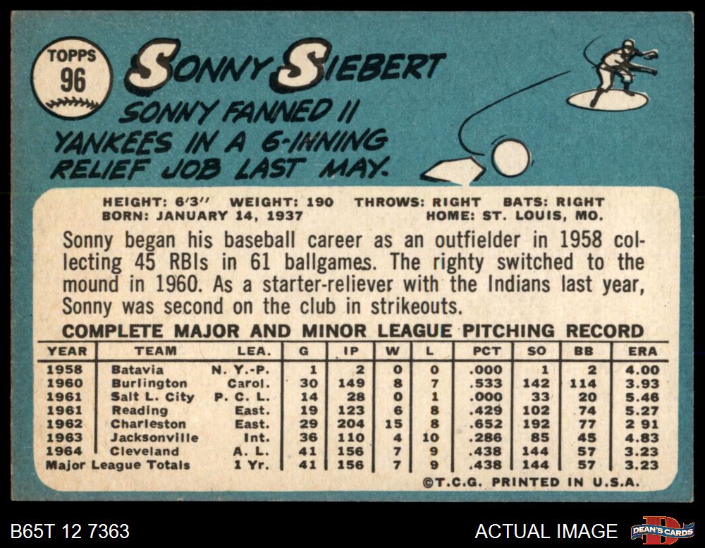 1965 Topps #96 Sonny Siebert 4 - VG/EX