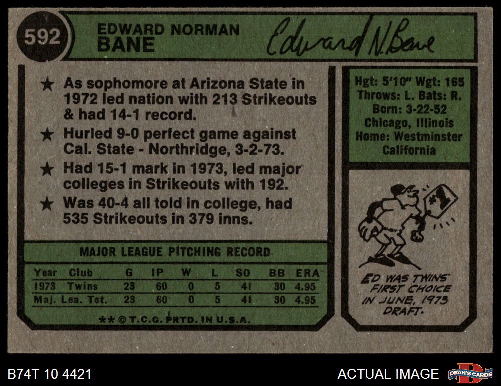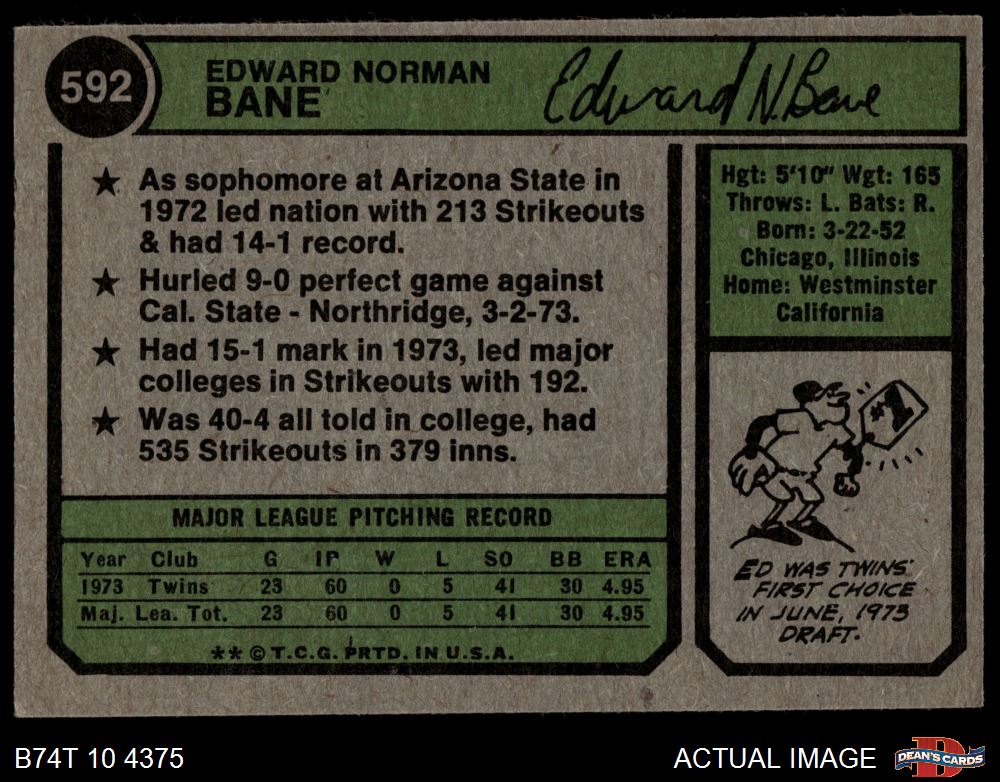 1974 Topps #592 Ed Bane 3 - VG