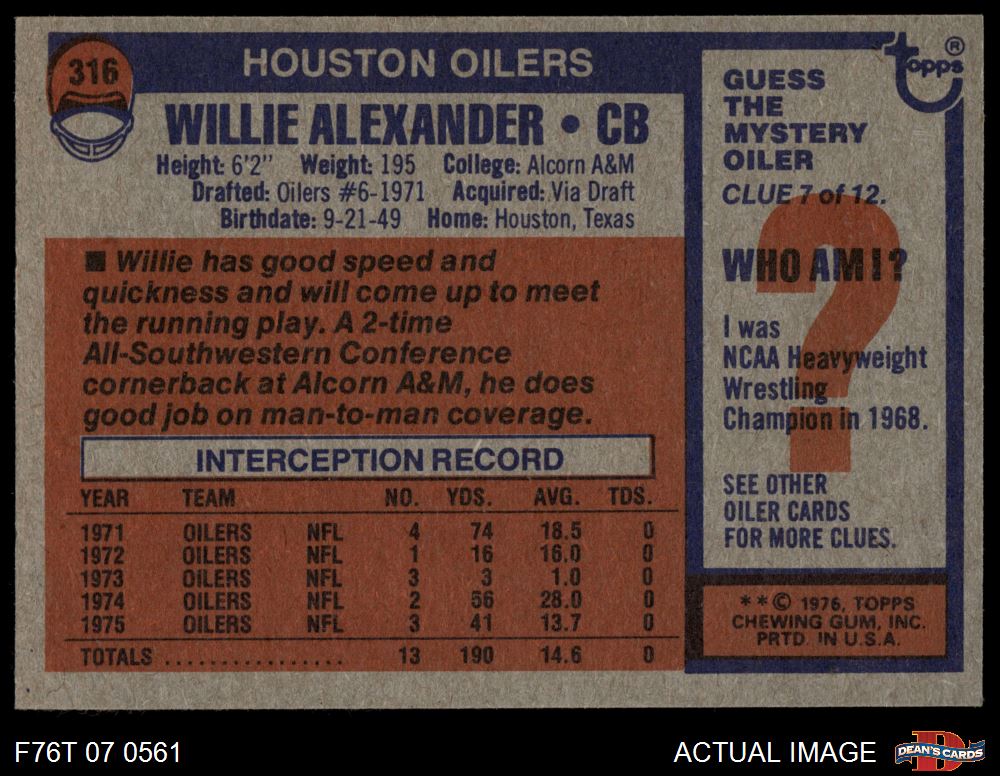 1976 Topps #316 Willie Alexander 6 - EX/MT