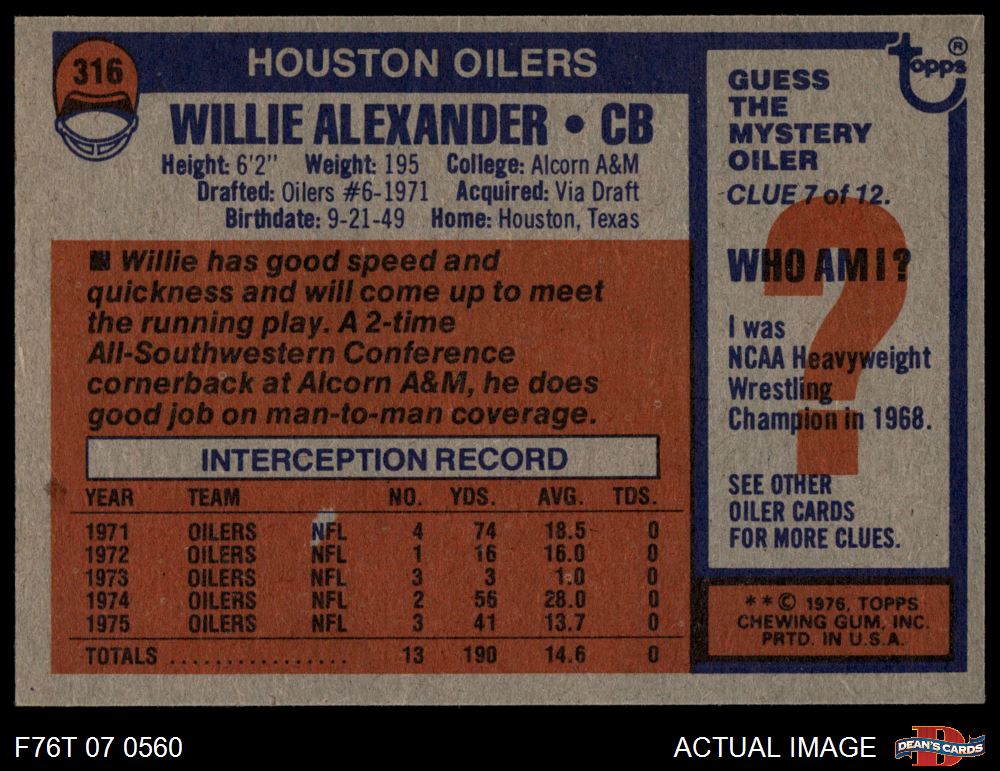 1976 Topps #316 Willie Alexander 8 - NM/MT