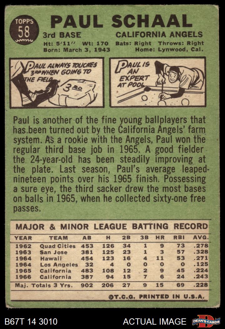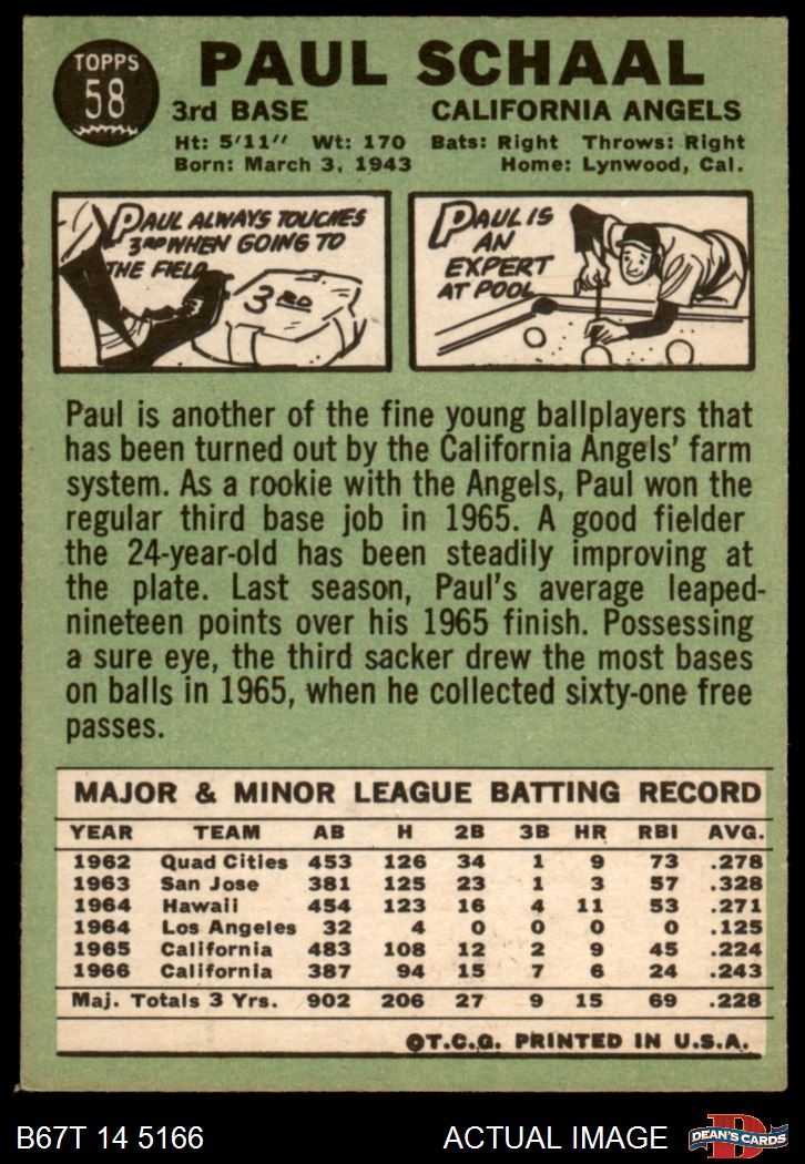 1967 Topps #58 xGRN Paul Schaal 2 - GOOD