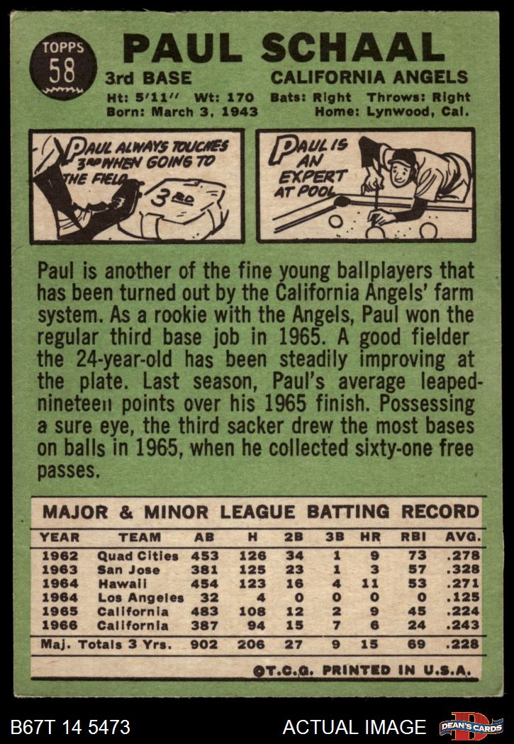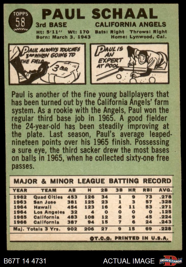 1967 Topps #58 xGRN Paul Schaal 4 - VG/EX
