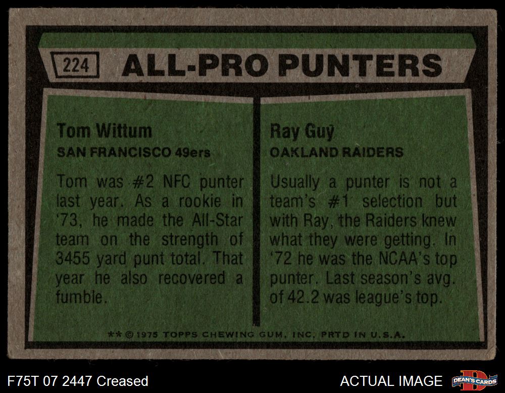 1975 Topps #224 - Tom Wittum / Ray Guy All-Pro Punters 2 - GOOD