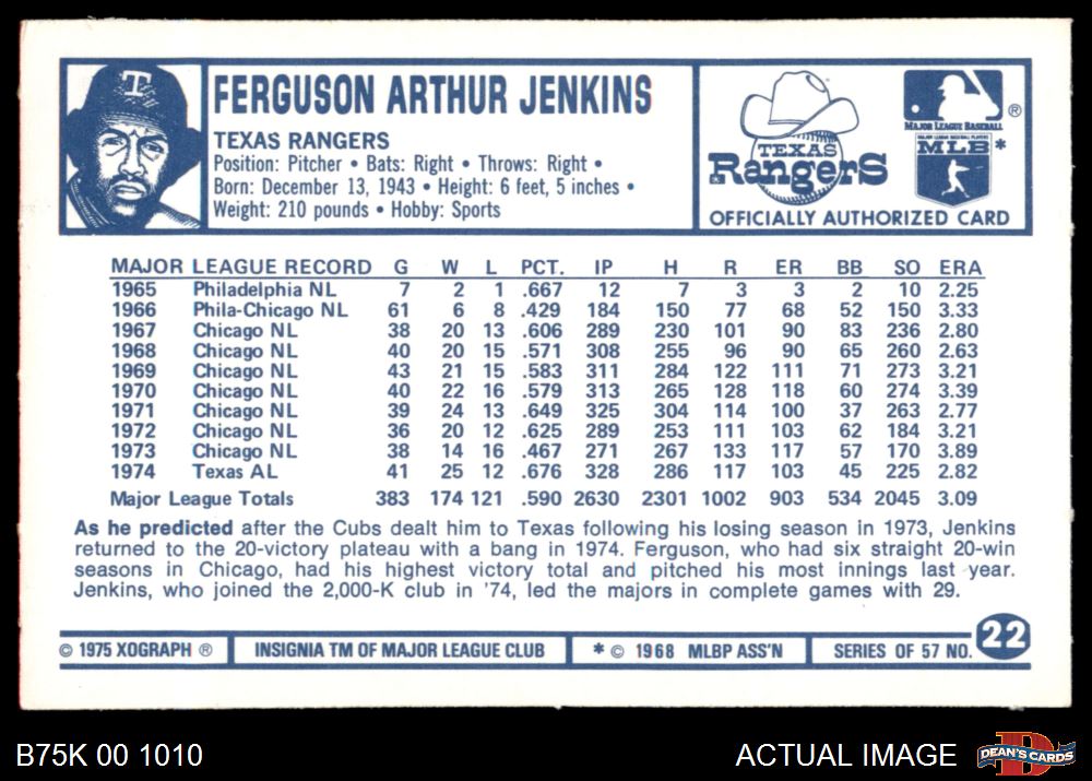 1975 Kellogg's #22 Fergie Jenkins 8 - NM/MT