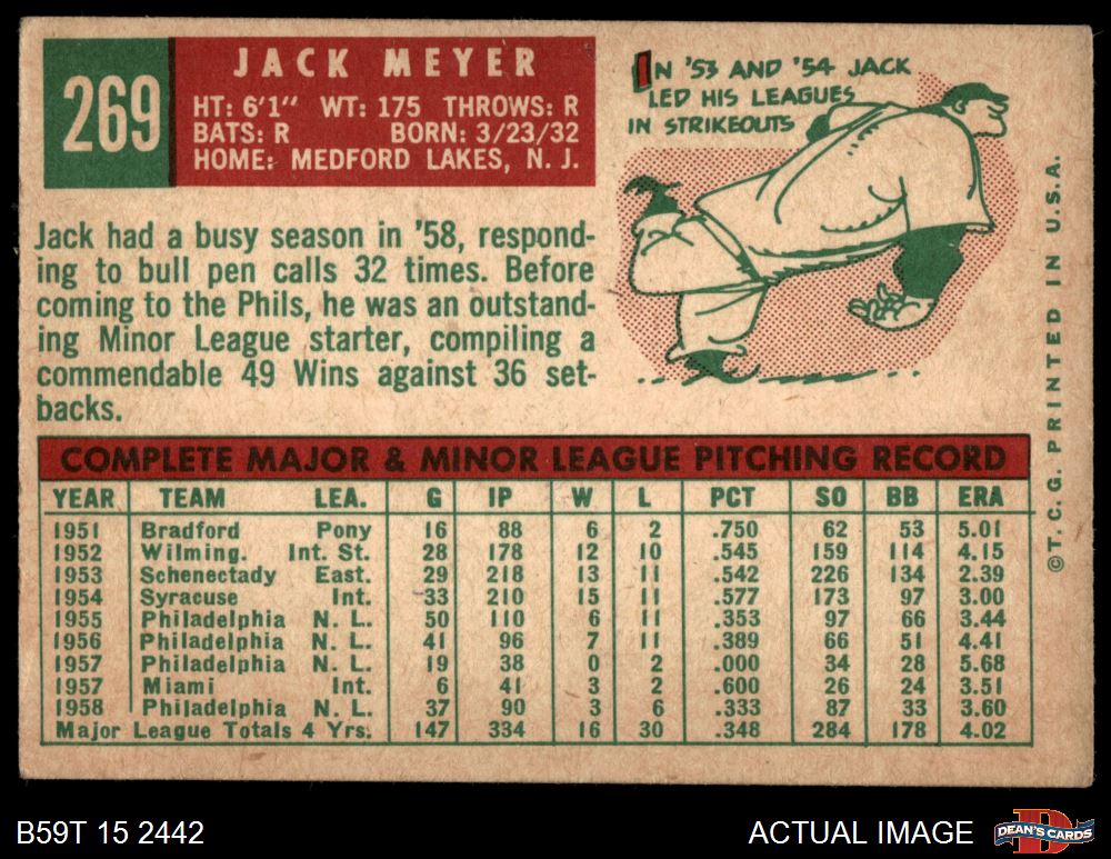 1959 Topps #269 Jack Meyer 2 - GOOD
