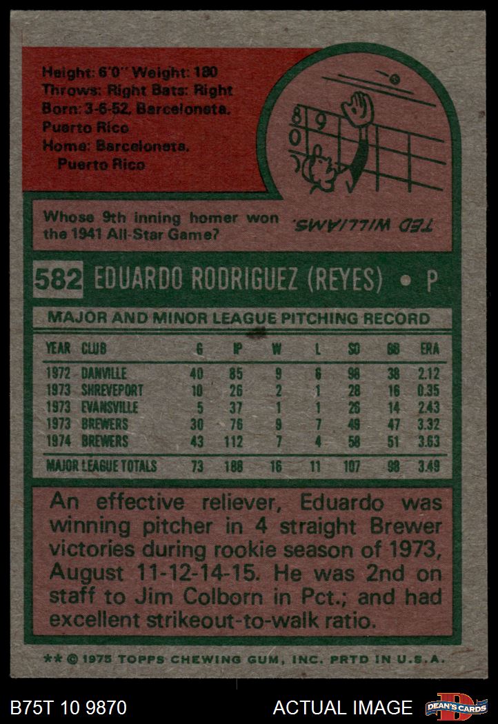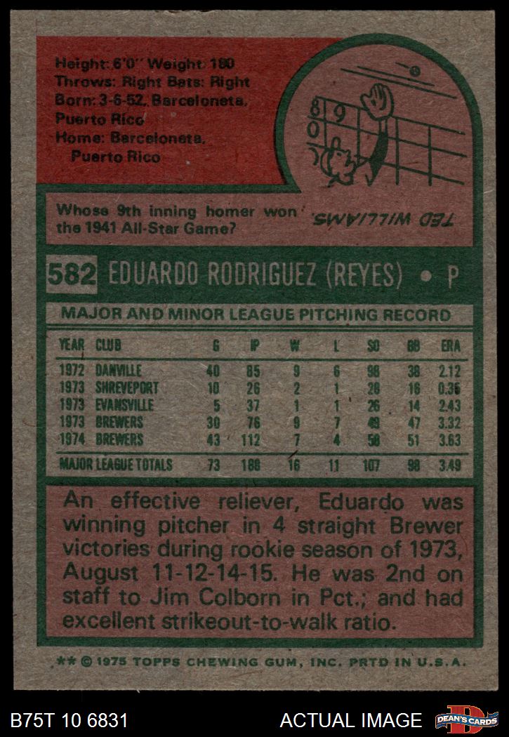 1975 Topps #582 Eduardo Rodriguez 6 - EX/MT