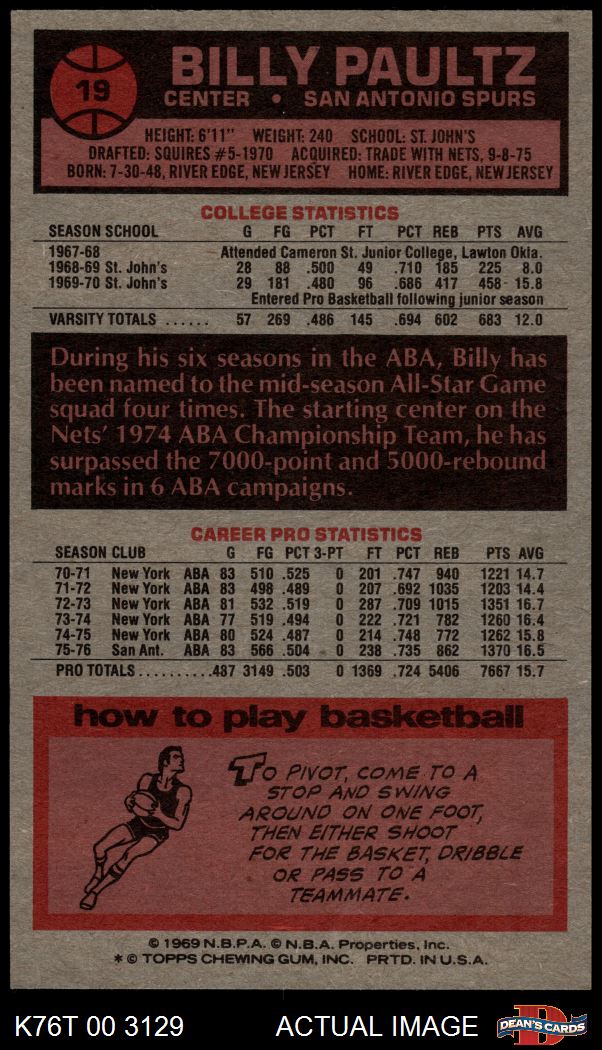 1976 Topps #19 Billy Paultz 7.5 - NM+