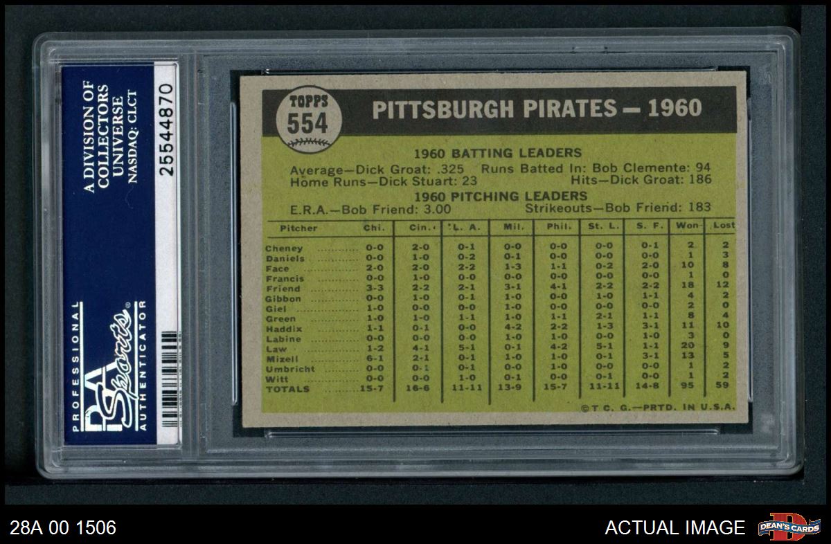 1961 Topps #554 Pirates Team
