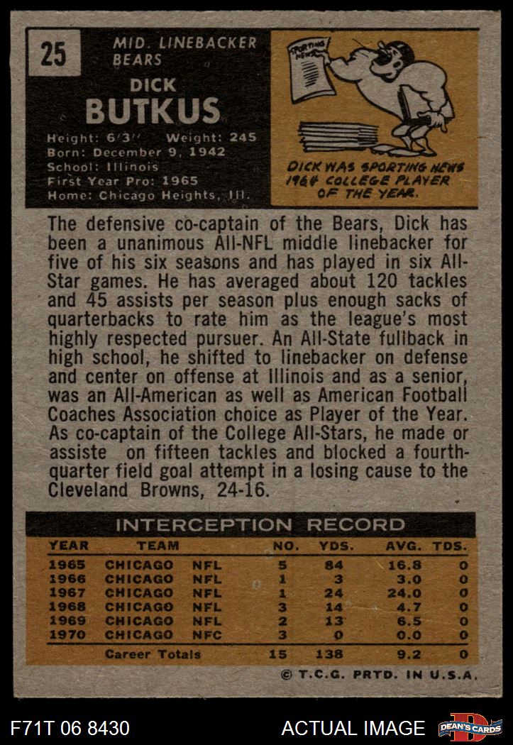 1971 Topps #25 Dick Butkus