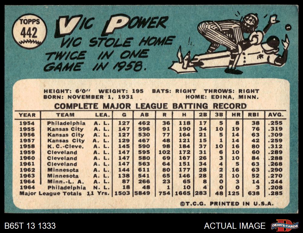 1965 Topps #442 Vic Power 5.5 - EX+