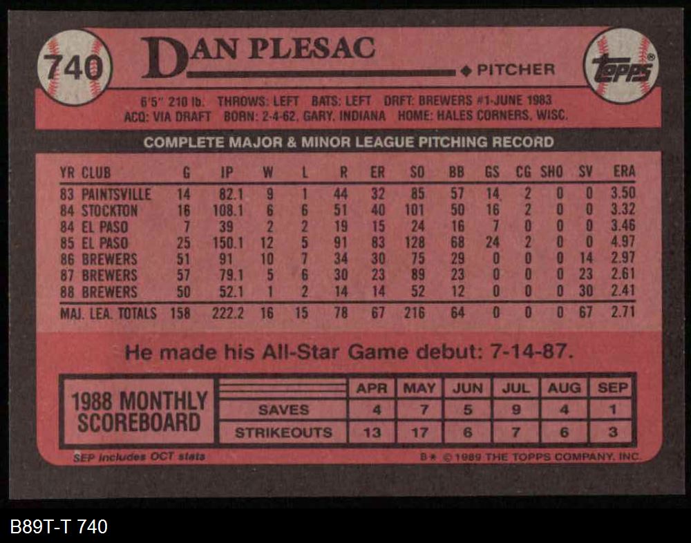 1989 Topps #740 Dan Plesac 8 - NM/MT