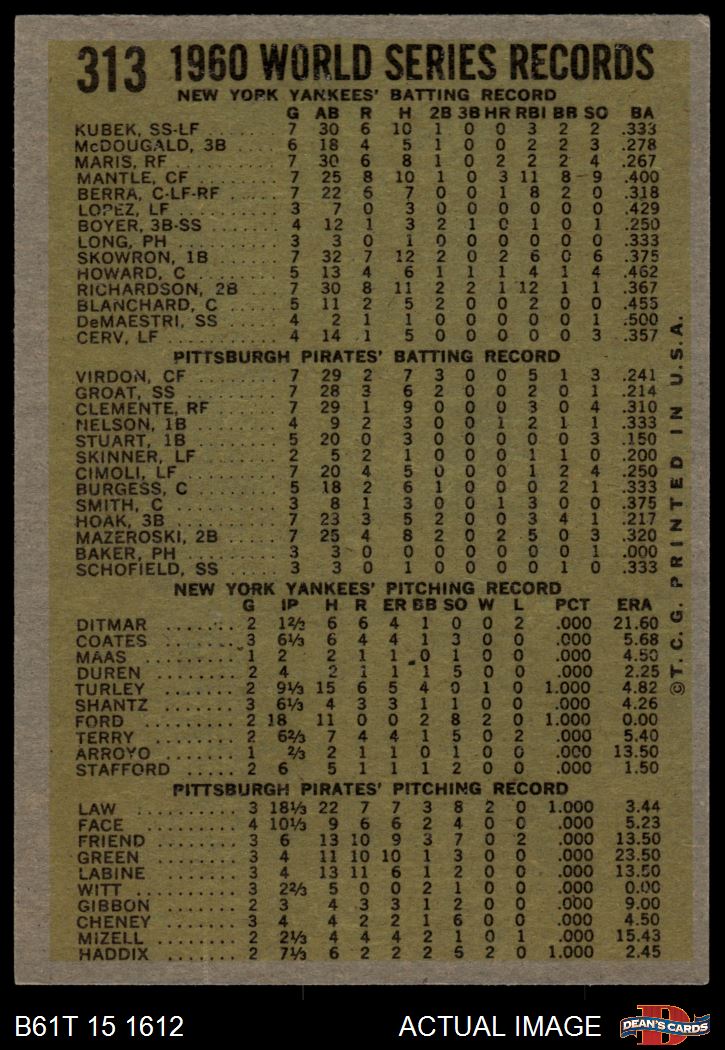 1961 Topps #313 1960 World Series - Summary - The Winners Celebrate 3 - VG