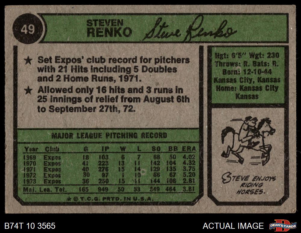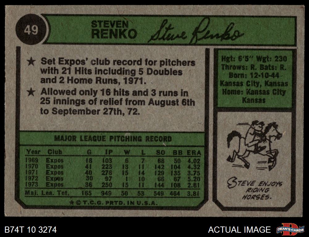 1974 Topps #49 Steve Renko 4.5 - VG/EX+