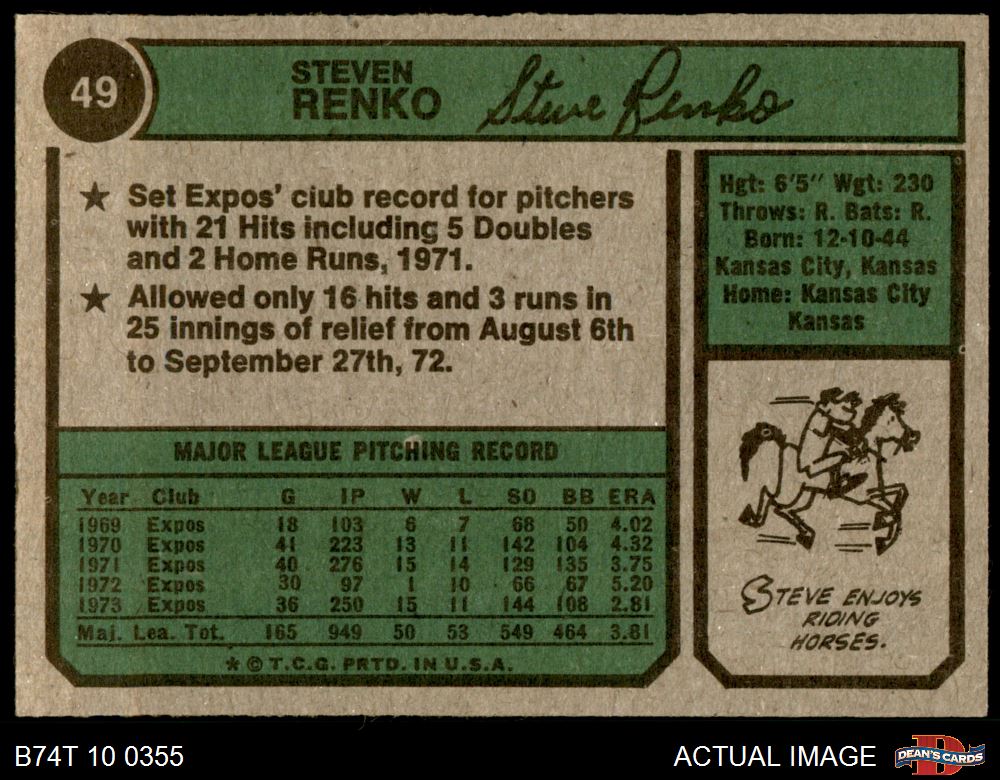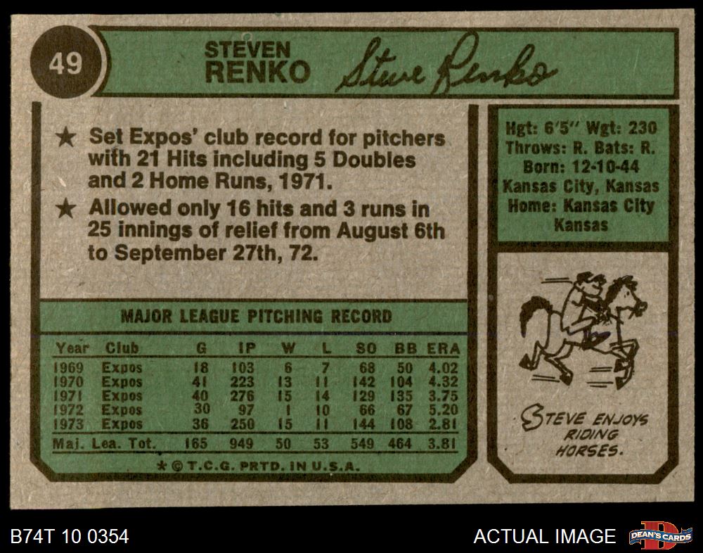 1974 Topps #49 Steve Renko 6 - EX/MT